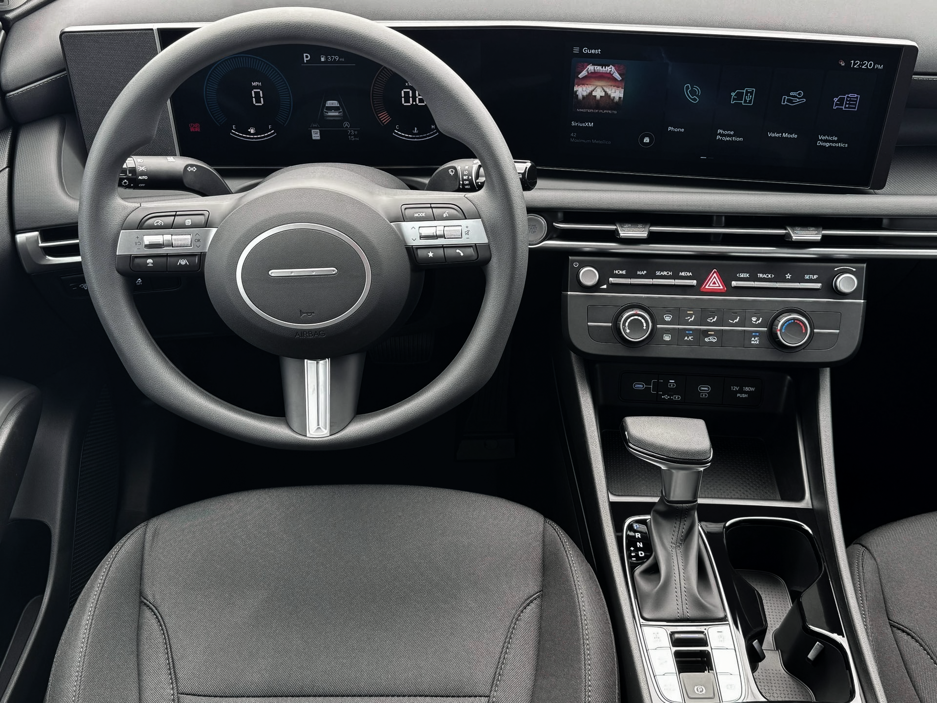 - Radio: AM/FM/HD Audio System -inc: 12.3" color touchscreen display, 6 speakers, SiriusXM satellite radio system (3-month trial subscription), wireless Apple CarPlay and Android Auto integration, controller OTA update capability, Blue Link connected car system and USB connectivity