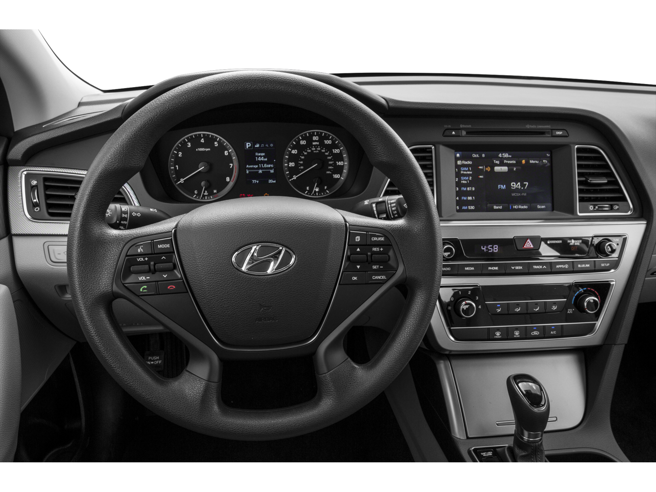 2015 Hyundai Sonata SE Shale Gray Metallic 2.4L I4 DGI DOHC 16V ULEV II 185hp FWD 25/37 City/Highway MPG Gray Cloth, 16 x 6.5J Aluminum Alloy Wheels, 4-Wheel Disc Brakes, 6 Speakers, ABS brakes, Air Conditioning, Alloy wheels, AM/FM radio: SiriusXM, Anti-whiplash front head restraints, Brake assist, Bumpers: body-color, CD player, Delay-off headlights, Driver door bin, Driver vanity mirror, Dual front impact airbags, Dual front side impact airbags, Electronic Stability Control, Four wheel independent suspension, Front anti-roll bar, Front Bucket Seats, Front Center Armrest, Front reading lights, Heated door mirrors, Illuminated entry, Knee airbag, Low tire pressure warning, Occupant sensing airbag, Outside temperature display, Overhead airbag, Overhead console, Panic alarm, Passenger door bin, Passenger vanity mirror, Power door mirrors, Power steering, Power windows, Premium Cloth Seating Surfaces, Radio: AM/FM/SiriusXM/CD/MP3 Audio System, Rear anti-roll bar, Rear reading lights, Rear seat center armrest, Rear window defroster, Remote keyless entry, Security system, Speed control, Speed-sensing steering, Speed-Sensitive Wipers, Split folding rear seat, Spoiler, Steering wheel mounted audio controls, Tachometer, Telescoping steering wheel, Tilt steering wheel, Traction control, Trip computer, Variably intermittent wipers, Gray Cloth.