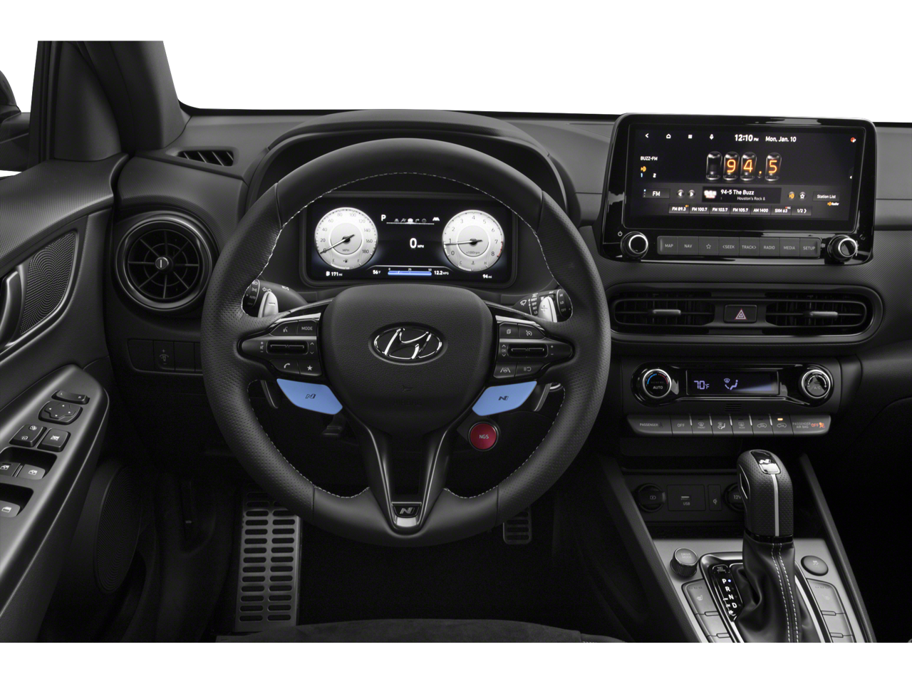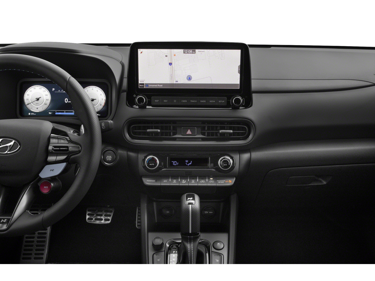 Step inside the cabin and you'll be greeted by a wealth of premium amenities, including heated N Sport Front Bucket Seats, a leather-wrapped steering wheel, and a state-of-the-art infotainment system with Apple CarPlay and Android Auto integration. The Kona N is not just a performance-focused SUV, but a true driver's companion that caters to your every need.