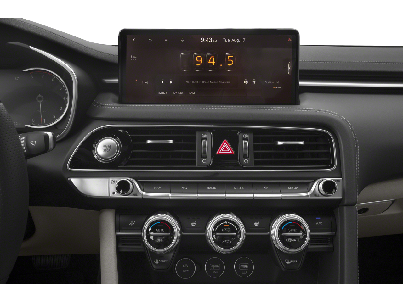 - Radio: AM/FM/SiriusXM/HD Audio System -inc: 6 speakers, 5th generation navigation system w/10.25" touchscreen, dynamic voice recognition, connected routing, over the air updates, Android Auto and Apple CarPlay, Genesis connected services, Bluetooth® hands-free phone and audio streaming system and 4 USB ports