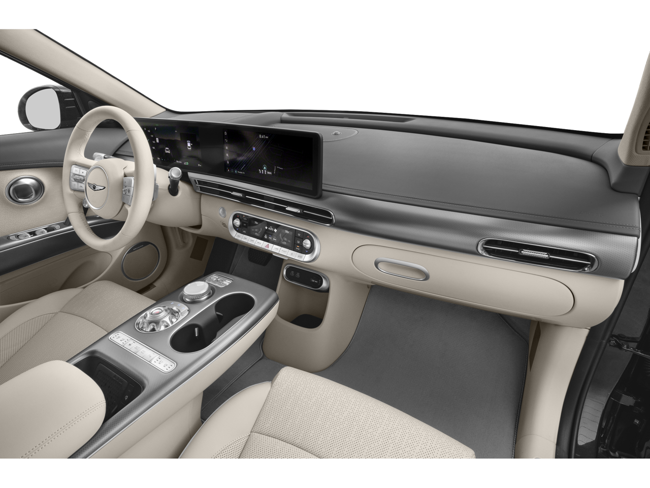 2024 Genesis GV60 Advanced Makalu Gray Electric Motor AWD 103/86 City/Highway MPG Navigation System, Option Group 01, 17 Speakers, 4-Wheel Disc Brakes, ABS brakes, Air Conditioning, Alloy wheels, AM/FM radio: SiriusXM, Android Auto & Apple CarPlay, Anti-whiplash front head restraints, Auto High-beam Headlights, Auto tilt-away steering wheel, Auto-dimming door mirrors, Auto-dimming Rear-View mirror, Automatic temperature control, Brake assist, Bumper Applique, Bumpers: body-color, Cargo Net, Delay-off headlights, Driver door bin, Driver vanity mirror, Dual front impact airbags, Dual front side impact airbags, Electronic Stability Control, Emergency communication system: Genesis Connected Services, Exterior Parking Camera Rear, First Aid Kit, Four wheel independent suspension, Front 8.264/Rear 10.650 Axle Ratio, Front anti-roll bar, Front Bucket Seats, Front Center Armrest, Front dual zone A/C, Front reading lights, Fully automatic headlights, Garage door transmitter: HomeLink, Heads-Up Display, Heated & Ventilated Front Seats w/Memory, Heated door mirrors, Heated front seats, Heated steering wheel, Illuminated Door Scuff Plates, Illuminated entry, Knee airbag, Leather Seating Surfaces, Leather steering wheel, Low tire pressure warning, Memory seat, Occupant sensing airbag, Outside temperature display, Overhead airbag, Overhead console, Panic alarm, Passenger door bin, Passenger vanity mirror, Power door mirrors, Power driver seat, Power Liftgate, Power passenger seat, Power steering, Power windows, Radio: AM/FM/HD Bang & Olufsen Premium Audio System, Rain sensing wipers, Rear anti-roll bar, Rear reading lights, Rear seat center armrest, Rear side impact airbag, Rear window defroster, Remote keyless entry, Reversible Cargo Tray, Security system, Speed control, Speed-sensing steering, Split folding rear seat, Spoiler, Steering wheel memory, Steering wheel mounted audio controls, Telescoping steering wheel, Tilt steering wheel, Traction control, Trip computer, Turn signal indicator mirrors, Variably intermittent wipers, Ventilated front seats, Wheels: 20 x 8.5J Alloy, Local Trade!, One Owner!, Navigation System, Option Group 01.