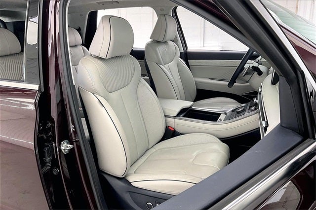 2024 Hyundai Palisade Calligraphy Sierra Burgundy V6 AWD 19/24 City/Highway MPG Hyundai Certified Used Vehicles Certified, Navigation System, Option Group 01, 12 Speakers, 3.648 Axle Ratio, 3rd row seats: split-bench, 4-Wheel Disc Brakes, ABS brakes, Air Conditioning, Alloy wheels, AM/FM radio: SiriusXM, Apple CarPlay & Android Auto, Auto High-beam Headlights, Auto-dimming door mirrors, Auto-dimming Rear-View mirror, Auto-leveling suspension, Automatic temperature control, Brake assist, Bumpers: body-color, Cargo Cover/Screen, Carpeted Floor Mats, Compass, Delay-off headlights, Driver door bin, Driver vanity mirror, Dual front impact airbags, Dual front side impact airbags, Electronic Stability Control, Emergency communication system, Exterior Parking Camera Rear, First Aid Kit, Four wheel independent suspension, Front anti-roll bar, Front Bucket Seats, Front Center Armrest, Front dual zone A/C, Front reading lights, Fully automatic headlights, Garage door transmitter: HomeLink, harman/kardon® Speakers, Heads-Up Display, Heated & Ventilated Front Bucket Seats, Heated door mirrors, Heated front seats, Heated rear seats, Heated steering wheel, Illuminated entry, Knee airbag, Low tire pressure warning, Memory seat, Mudguards, Occupant sensing airbag, Outside temperature display, Overhead airbag, Overhead console, Panic alarm, Passenger door bin, Passenger vanity mirror, Power door mirrors, Power driver seat, Power Liftgate, Power moonroof, Power passenger seat, Power steering, Power windows, Premium Nappa Leather Seat Trim, Radio data system, Radio: AM/FM/MP3 Premium Audio System, Rain sensing wipers, Rear air conditioning, Rear anti-roll bar, Rear audio controls, Rear reading lights, Rear side impact airbag, Rear window defroster, Rear window wiper, Reclining 3rd row seat, Remote keyless entry, Roof Rack Cross Rails, Security system, Speed control, Speed-sensing steering, Split folding rear seat, Spoiler, Steering wheel mounted audio controls, Tachometer, Telescoping steering wheel, Tilt steering wheel, Traction control, Trip computer, Turn signal indicator mirrors, Variably intermittent wipers, Ventilated front seats, Ventilated rear seats, Wheel Locks, Wheels: 20 x 7.5J Calligraphy Exclusive Alloy, Local Trade!, One Owner!, Navigation System, Option Group 01.