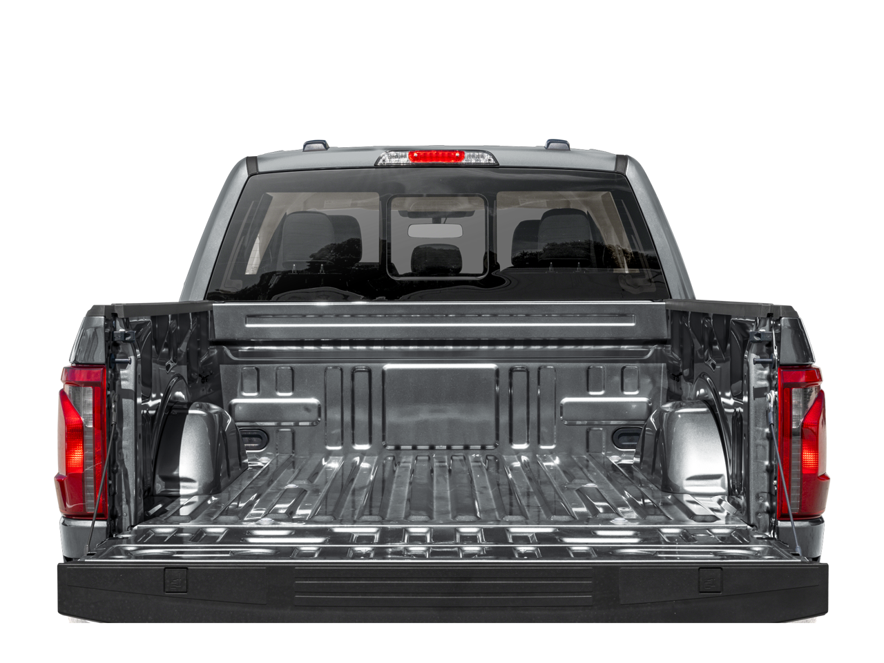 Exterior highlights include a black painted grille with a chrome center bar, chrome door and tailgate handles, and a chrome single-tip exhaust, giving the F-150 a bold and distinctive presence. The 6 angular bright anodized step bars provide easy access, while the Tough Bed spray-in bedliner ensures your cargo stays secure and protected.