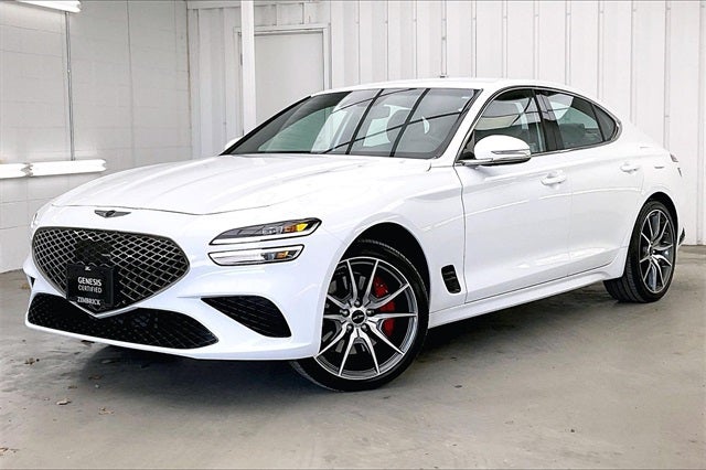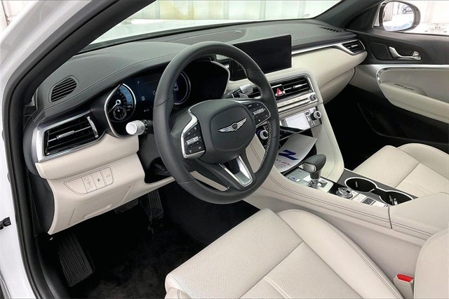 2025 Genesis G70 2.5T Alta White I4 AWD 20/28 City/Highway MPG 4-Wheel Disc Brakes, 6 Speakers, ABS brakes, Air Conditioning, Alloy wheels, AM/FM radio: SiriusXM, Android Auto & Apple CarPlay, Anti-whiplash front head restraints, Auto High-beam Headlights, Auto-dimming Rear-View mirror, Automatic temperature control, Brake assist, Bumpers: body-color, Delay-off headlights, Driver door bin, Driver vanity mirror, Dual front impact airbags, Dual front side impact airbags, Electronic Stability Control, Emergency communication system: Genesis Connected Services, Exterior Parking Camera Rear, First Aid Kit, Four wheel independent suspension, Front anti-roll bar, Front Bucket Seats, Front Center Armrest, Front dual zone A/C, Front reading lights, Fully automatic headlights, Garage door transmitter: HomeLink, Heated door mirrors, Heated front seats, Heated Multi-Adjustable Front Bucket Seats, Heated steering wheel, Illuminated entry, Knee airbag, Leather steering wheel, Leatherette Seating Surfaces, Low tire pressure warning, Navigation System, Occupant sensing airbag, Option Group 01, Outside temperature display, Overhead airbag, Overhead console, Panic alarm, Passenger door bin, Passenger vanity mirror, Power door mirrors, Power driver seat, Power passenger seat, Power steering, Power windows, Radio: AM/FM/SiriusXM/HD Audio System, Rear anti-roll bar, Rear reading lights, Rear seat center armrest, Rear side impact airbag, Rear window defroster, Remote keyless entry, Reversible Cargo Tray, Security system, Speed control, Speed-Sensitive Wipers, Split folding rear seat, Steering wheel mounted audio controls, Tachometer, Telescoping steering wheel, Traction control, Trip computer, Turn signal indicator mirrors, Variably intermittent wipers, Wheels: 19 x 8.0J Fr & 19 x 8.5J Rr Alloy.